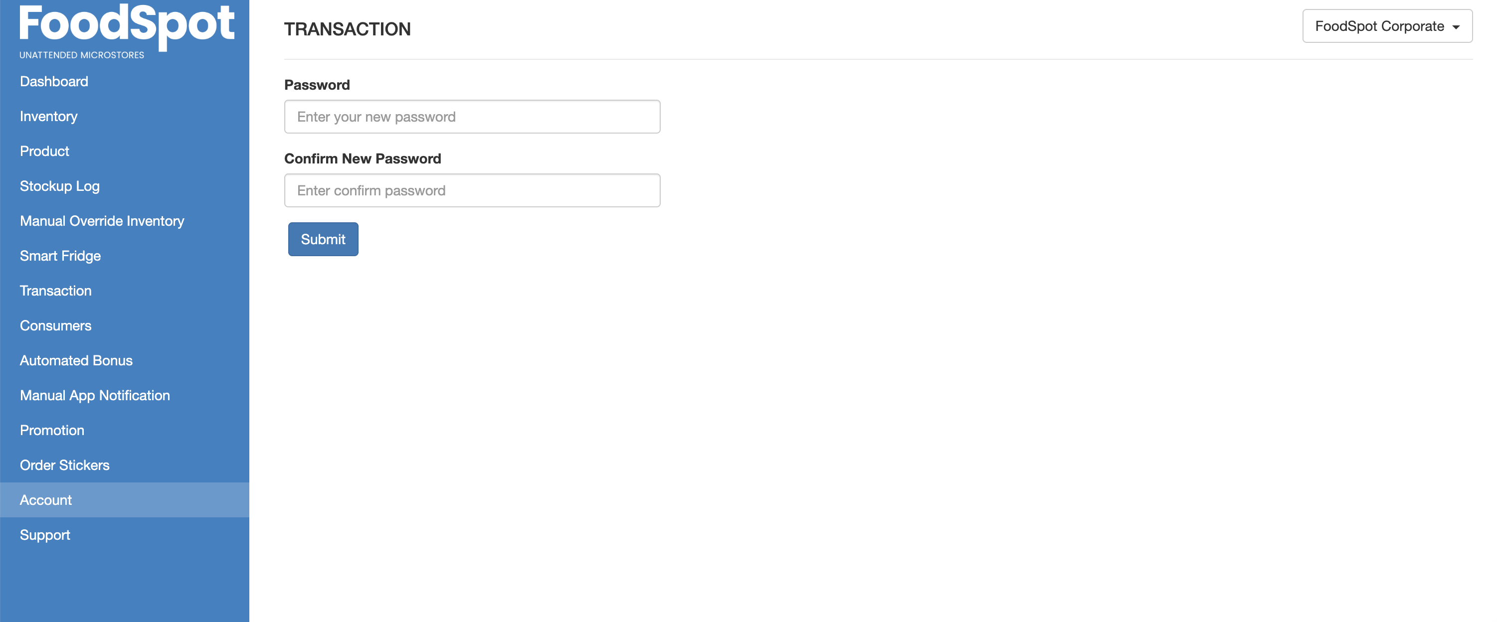 January 9, 2026 Changing Your Password How to change your FoodSpot dashboard and digital key password Click your name in the top right corner and click "Settings" Type your new password into both fields and hit submit. Click the dropdown in the top right corner and click "Settings" Type your new password into both fields and hit submit.