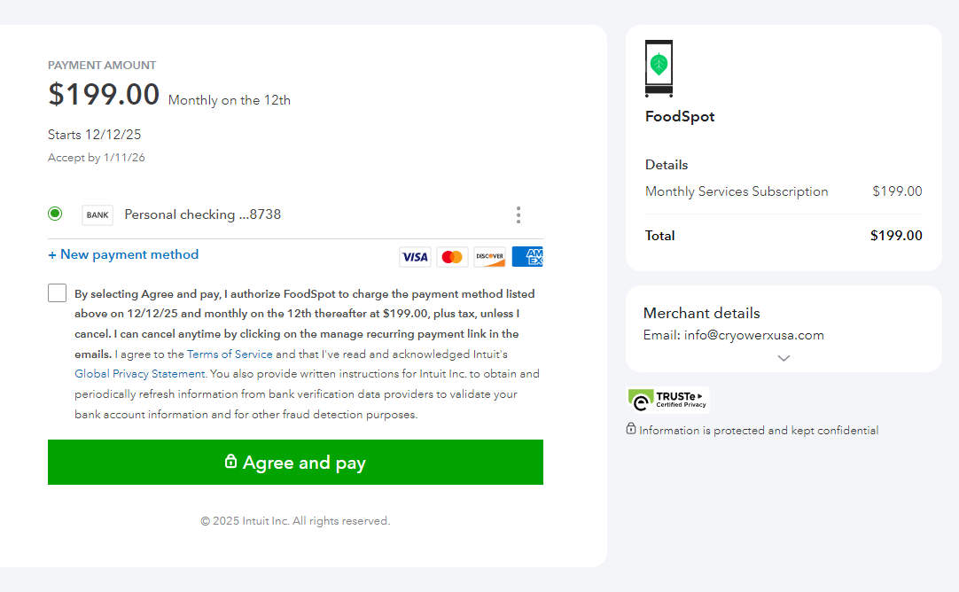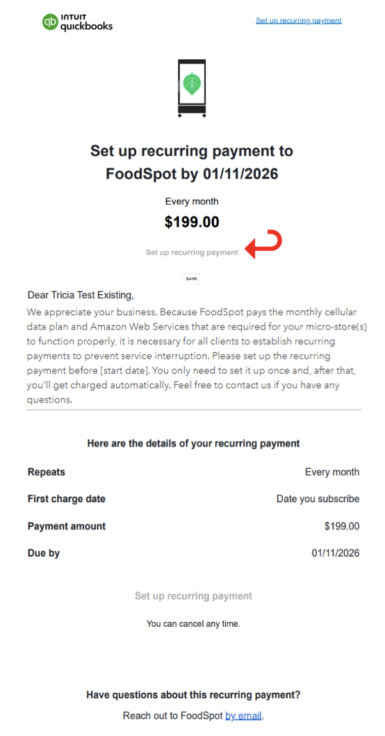 January 7, 2026 Setting Up Recurring Payments Automate your monthly subscription payments with these instructions. Step 1: Open the email request for recurring payment setup and click “Set up recurring payment.” Step 2: Enter banking information and select “Agree and pay.” Step 3: You will receive a confirmation email verifying this information.