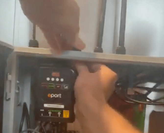 - Locate the router on the top right of the control box. Release it by unscrewing the top screw of the belt holding it in place.