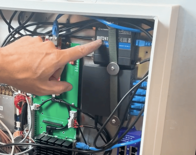 - Unscrew the two cellular antenna cables from the router. These are the two bottom cables when the router is in it's original orientation.