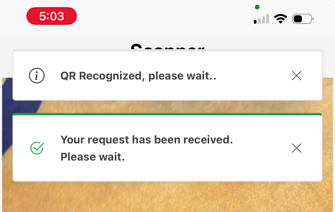 Operator: after scanning the QR code with your digital key, you see "Request has been received, please wait," but the door does not unlock.
